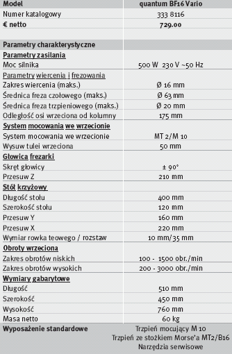 - Bezstopniowa regulacja obrotów wrzeciona w zakresie 100 - 3000 obr./min