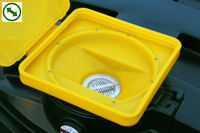 Wykonywane z najwyższej jakości polietylenu zbiorniki na zużyty olej, nigdy nie korodują i nie przeciekają, są odporne na uszkodzenia mechaniczne. Aby uniknąć rozlania i dostania się śmieci do zbiornika zaprojektowano specjalny wlew oleju mieszczący do 20 litrów oleju z zainstalowanym na stałe sitkiem i zamykaną pokrywą. |